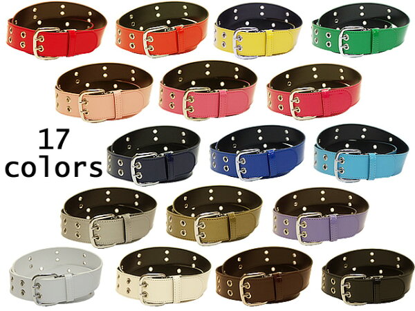艶々エナメル合皮に表面にハトメ使用して、裏側は合皮で縫い合わせてあり丈夫に出来ています◎バックルは取り外しOKなので、ベルトが余り過ぎて困るときにはベルトを切ってジャストサイズに変更可能!男女兼用(ユニセックス)タイプのアイレットベルトだから嬉しいですね♪